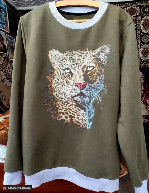 На рост 174-178, ткань футер 3-х нитка петля. 85 хлопок/15 полиэстер Полностью ручная работа с машинной вышивкой. Цвет: олива Очень мягкий и приятный к телу. Полностью ручная работа.