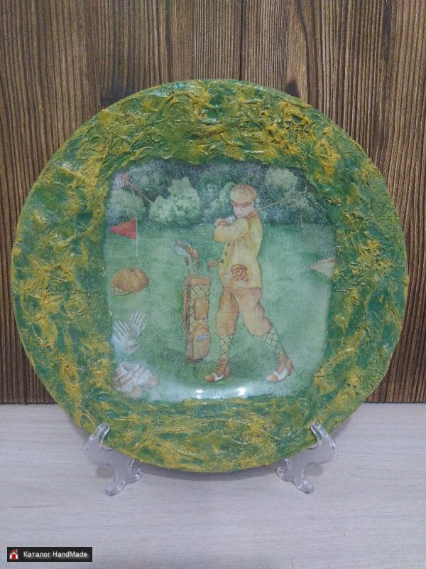 тарелка ручной работы для любимого человека или друга у которого есть хобби.Техника терра, декупаж многослойное покрытие лаком, есть подвес или можно поставить на подставку.Размер 26х26