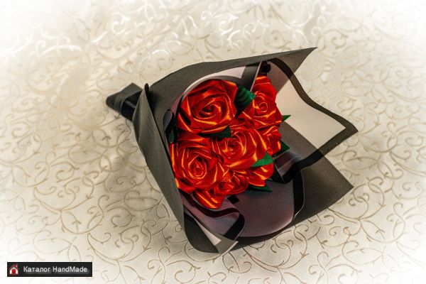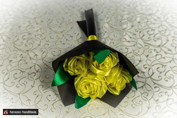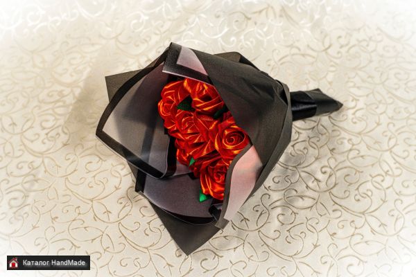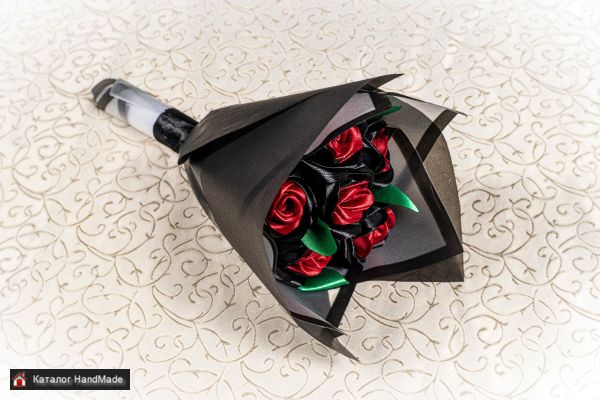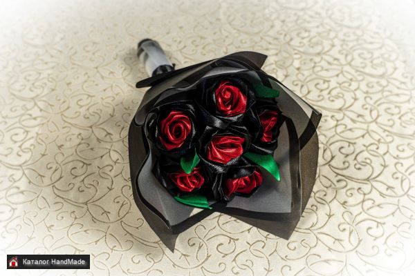 Траурные букеты из атласных роз на пластиковой/металлической основе будут смотреться нестандартно и необычно.