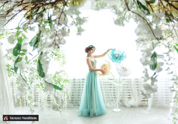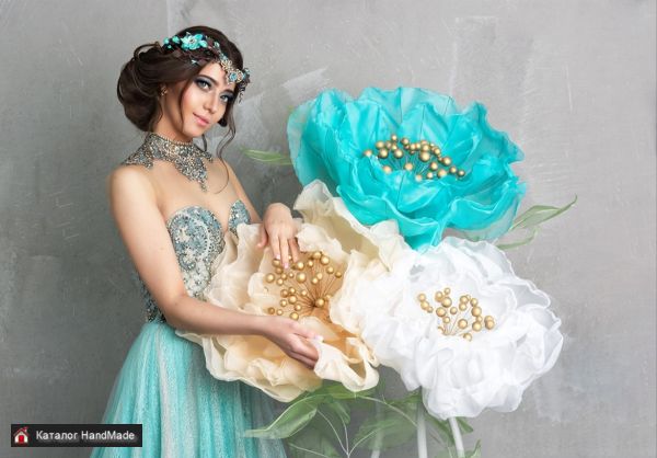 Материалы: ткань, органза, шифон, креп, клей, проволока, труба, бусины, краска