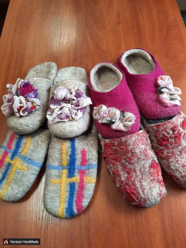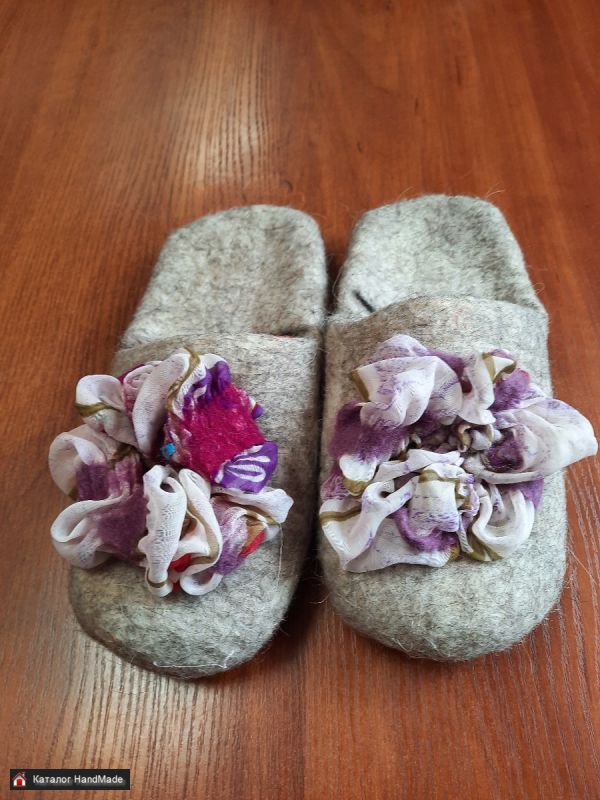 Валяные тапочки. Натуральная шерсть. Натуральная кожа на подошве. Хорошего качества валяние, прослужит очень и очень долго.
