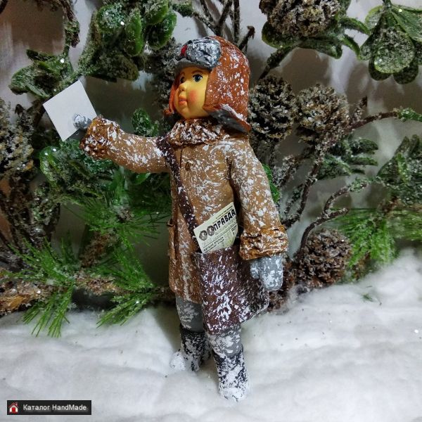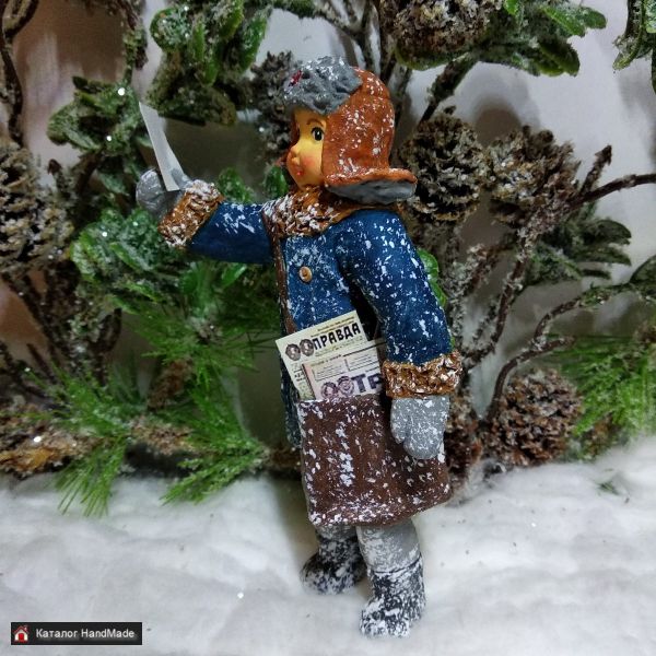 Ватная ёлочная игрушка ''Почтальон''.