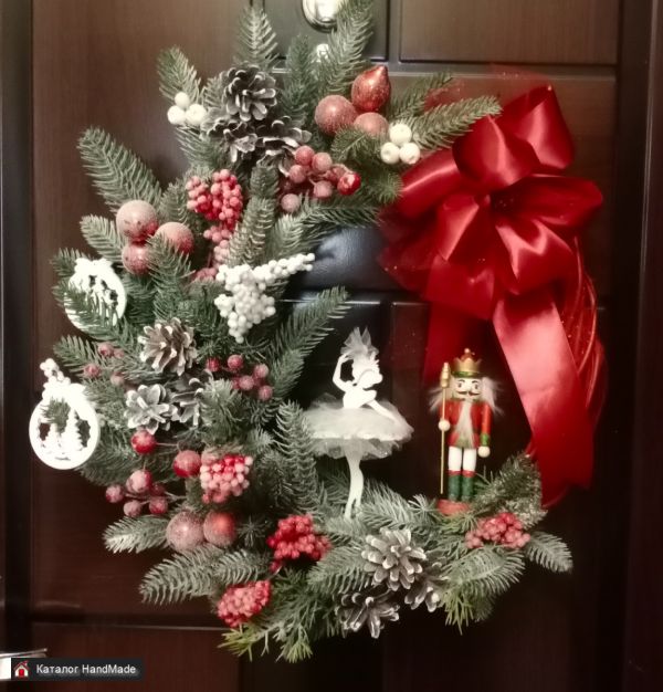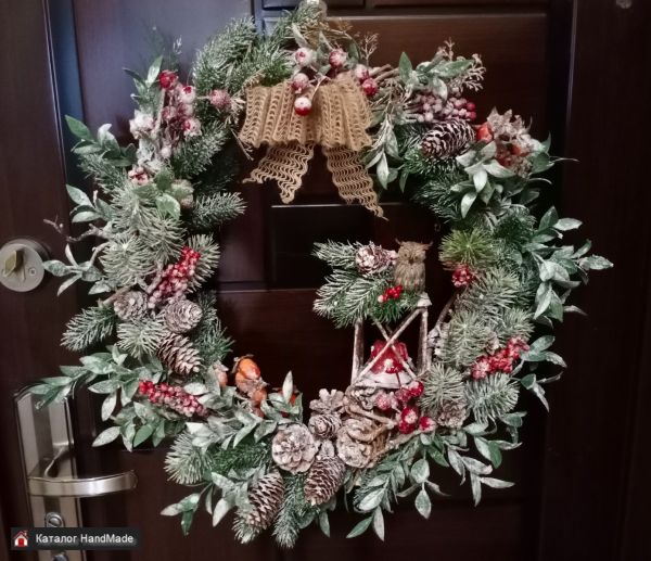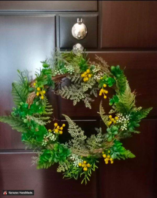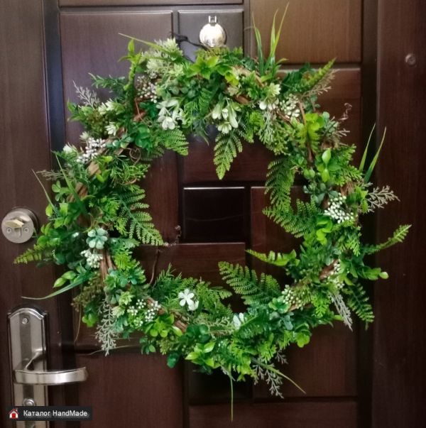 Венок ручной работы, диаметр примерно 40 - 45 см, под заказ, цветовая гамма по вашему запросу,на фото представлены образцы работ