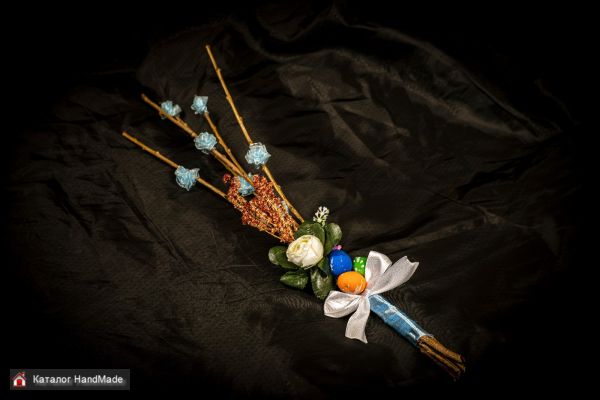 Натуральные ветки вербы декорированные искусственными цветами и маленькими розочками из капроновой ленты. Каждый букетик сделан с чистым сердцем на радость вам!