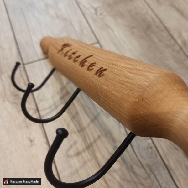 Вешалка для полотенец в виде скалки. Материал - дерево (дуб, ясень, клён). Ручная работа, изготовление под заказ.