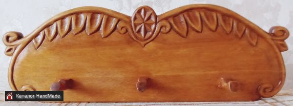 Резная с дерева вешалка на кухню. Тонировка, лак. Размер 35х11 см.