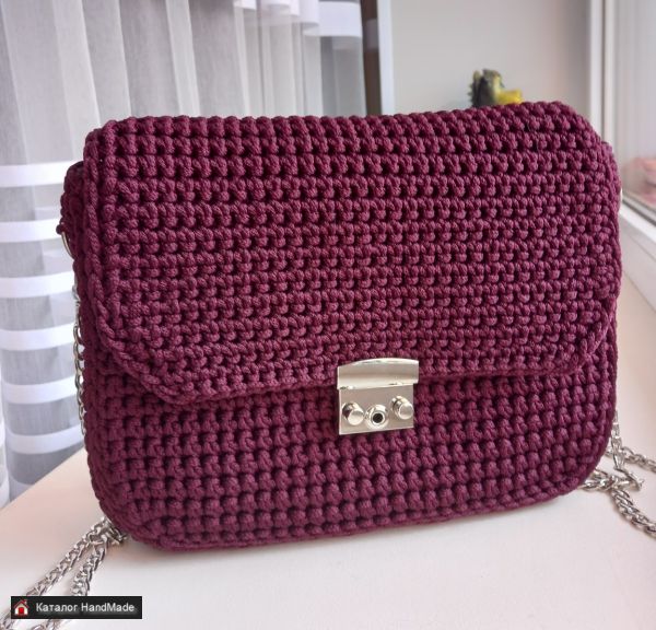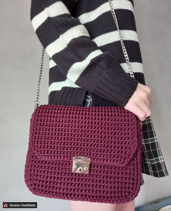 Сумка на цепочке (возможно изготовление ремня из этого же шнура). Размеры 19 см на 23 см, боковины 6 см.