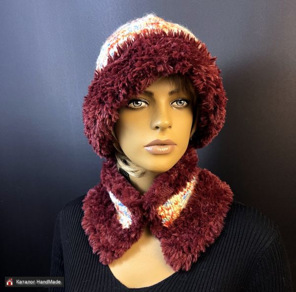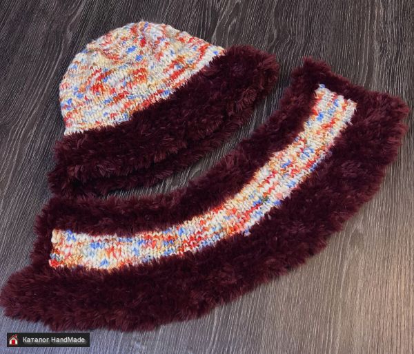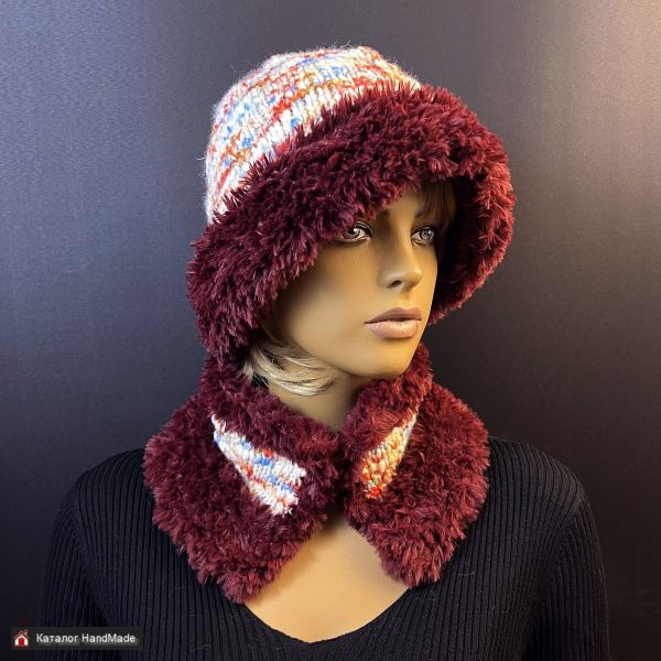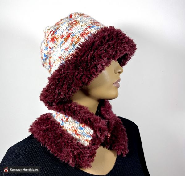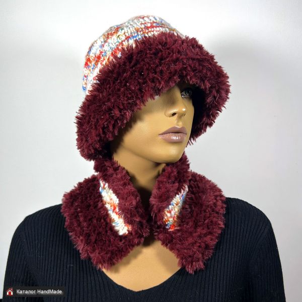 Вязаный комплект Шапка-шляпка - тренд 2026 года - "панама" с полями и шарф-воротник в единственном экземпляре.