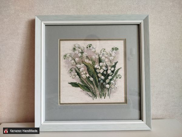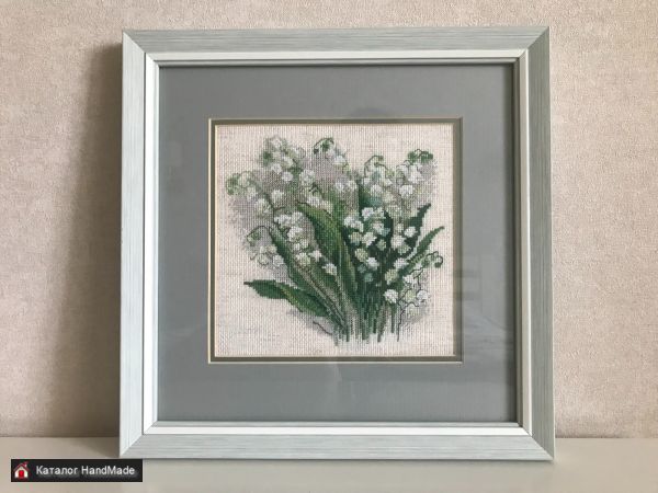 Картина, вышитая крестиком, "Ландыши" украсит Ваш интерьер и добавит индивидуальности.