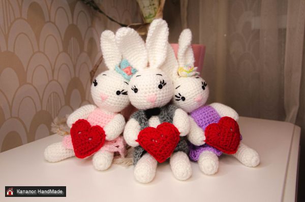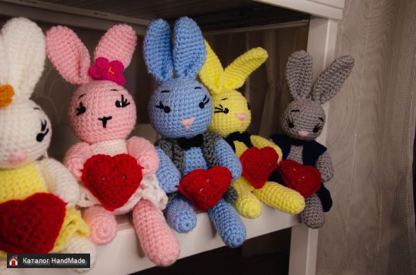 Под заказ. Возможность сделать зайку любого цвета и размера (согласовывать заранее) На фото зайчики размером около 15 см