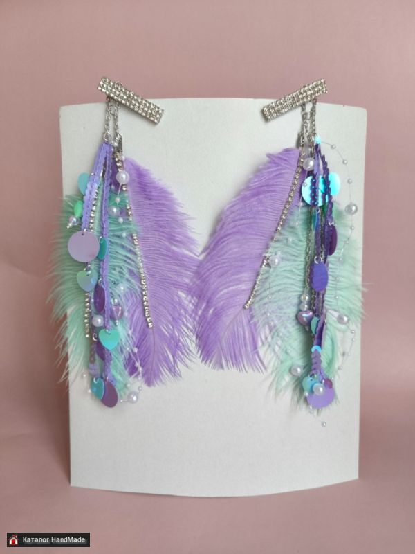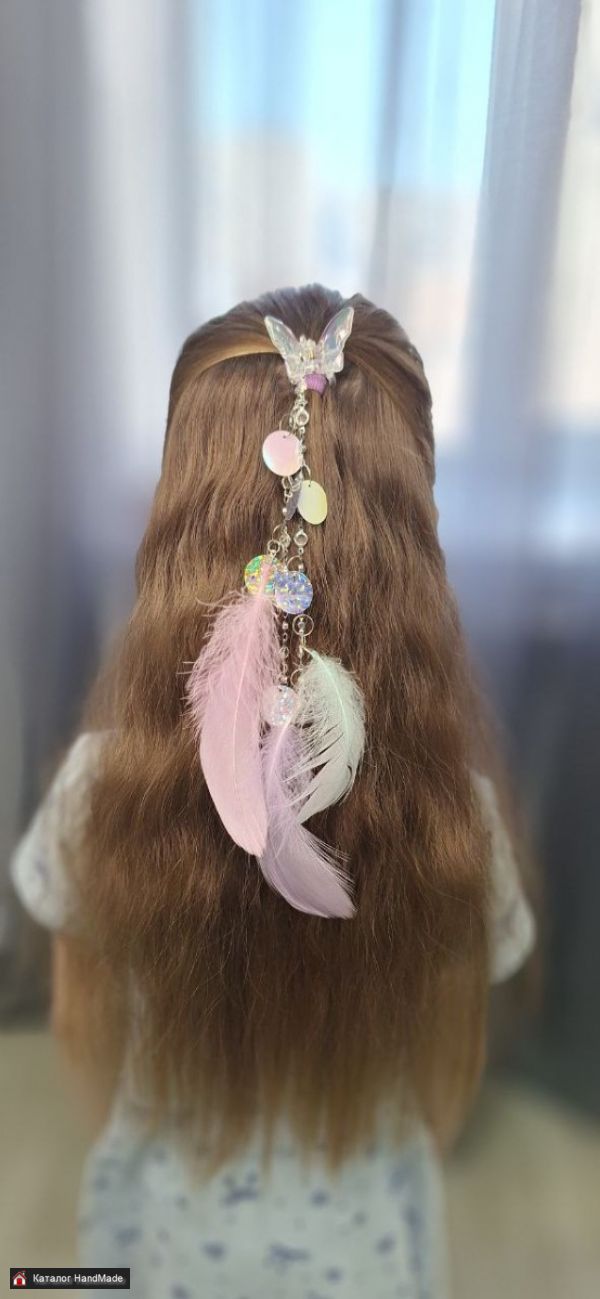 Нежное, воздушное украшения из перьев ,цепочек, пайеток, бусин, подвесок! Это украшение можно сделать абсолютно на любой основе: на заколке, зажиме, на невидимке, на крабе, ободке. Это идеальное украшение, когда не хочешь мучатся над созданием сложных причёсок!