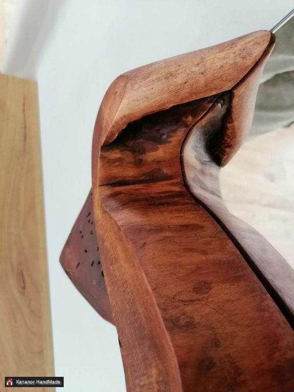 Зеркало в деревянной раме из спила дерева. Трещины залиты эпоксидной смолой. Отверстия от жучков в естественном виде. Обработано тонированным маслом и воском. На цепочке.