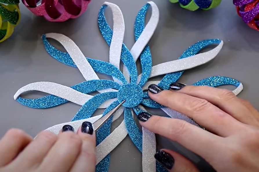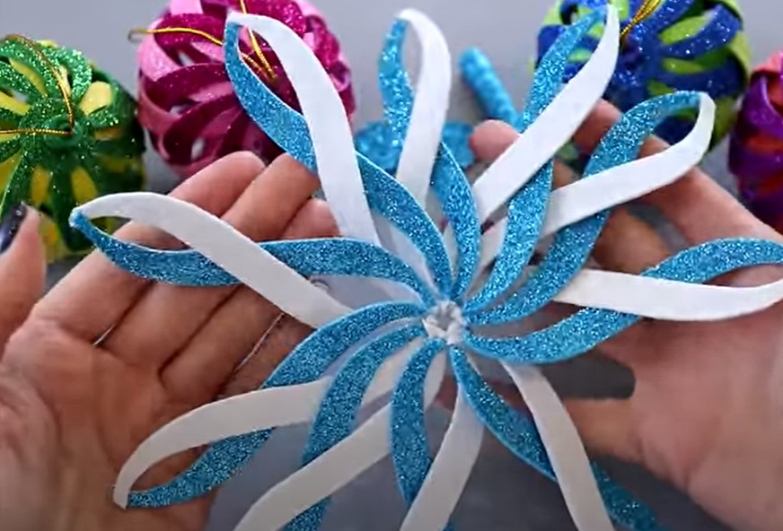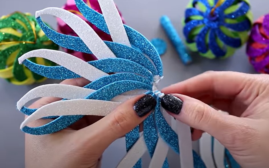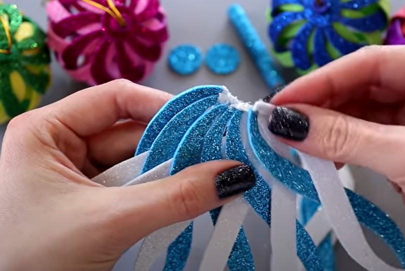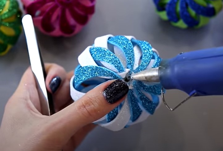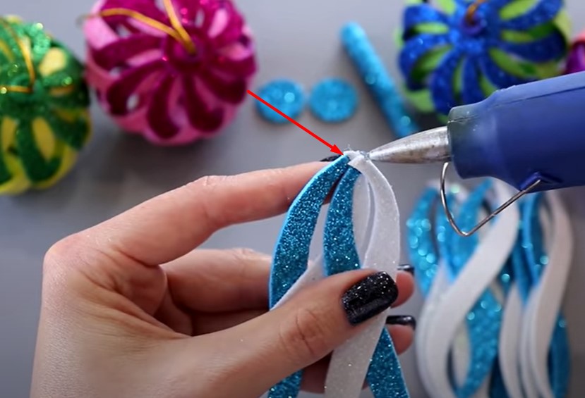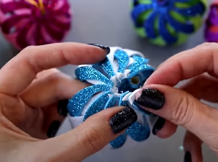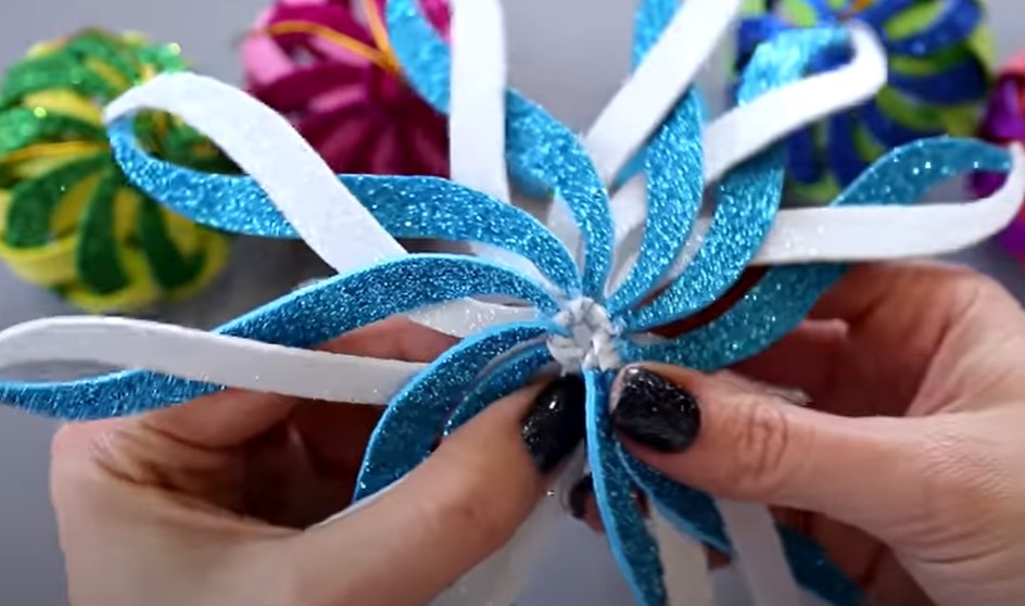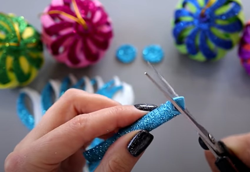 Сегодня мы рассмотрим, как сделать объемные елочные игрушки из блестящего глиттерного фоамирана в виде шара своими руками. Ниже представлена подробная пошаговая инструкция в картинках по созданию Новогодней игрушки для детей.