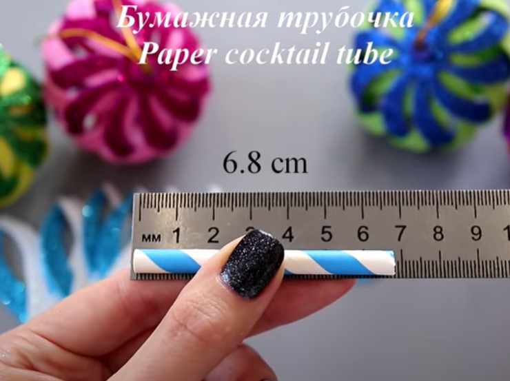 и бумажная трубочка из кусочка длиной 6,8 см. Сделаем центральную основу, которая будет придавать форму шара.