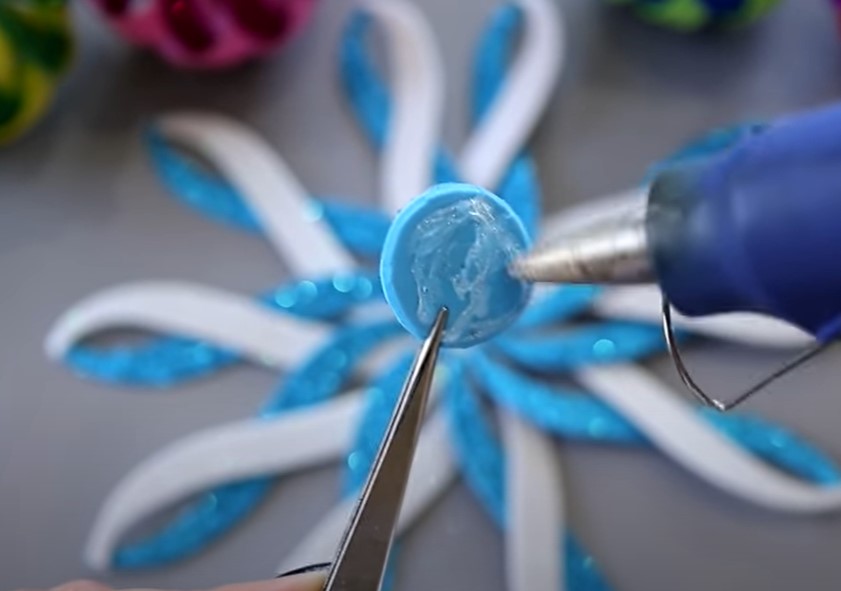 Разравниваем получившееся изделие и закрепим их кружочком фоамирана