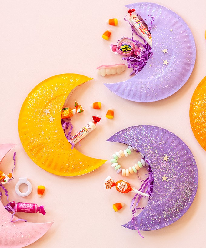 Дети любят участвовать в оформлении праздников или помогать в организации вечеринок, будь то для группы соседей и друзей или просто близких родственников. Каждый особый штрих вносит свой вклад в создание волшебных детских воспоминаний. Эти лунные мешочки - забавная и простая поделка для всей семьи, и они будут прекрасно смотреться на каждом столике во время ужина на Хэллоуин. Гости могут забрать их домой в качестве сувениров или наполнить их любимыми конфетами и маленькими игрушками каждого члена семьи. Измените цветовую гамму для космической вечеринки (и наполните их леденцами Mars), создайте все фазы луны, или подвесьте к низу веревку или ленту для богемного настроения. Можно также нанизать их на гирлянду. Так много возможностей!