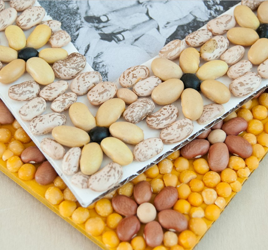 Прикрепите бобы к рамке с помощью белого клея. После этого отложите в сторону для полного высыхания.