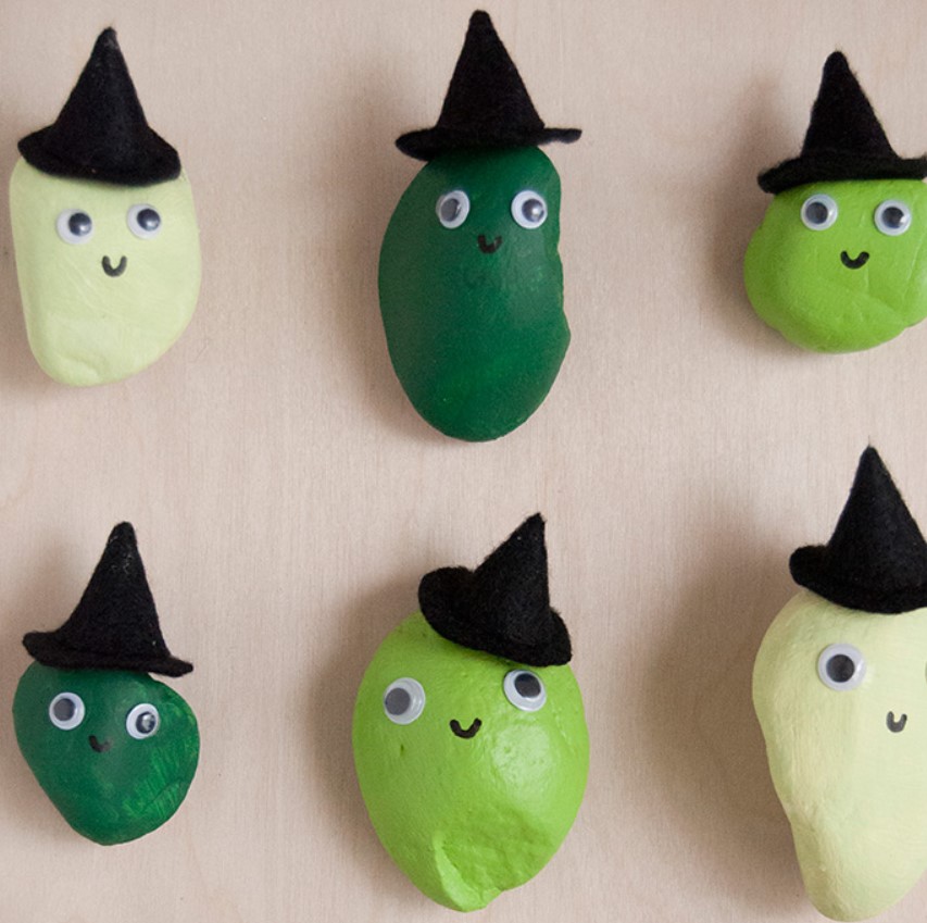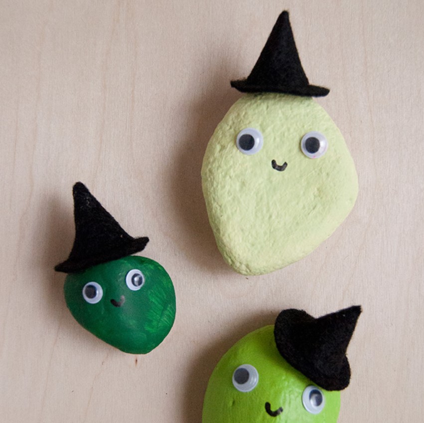 Я склонна думать о раскрашенных камнях как о летнем ремесле, но во время мозгового штурма поделок на Хэллоуин мне на ум пришли ведьминские шляпы. Я поняла, что будет очень весело сделать хэллоуинскую версию этих раскрашенных камней для вечеринки, которые я делала ранее в этом году. Эти нарисованные ведьмы на камнях также напоминают мне гирлянду из тыкв для вечеринки, которая была сделана несколько лет назад! Эти проекты просто показывают, что если вы можете нарисовать глаза, улыбку и шляпу, то это обязательно будет мило!