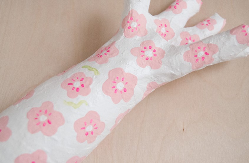 Нарежьте куски чистой газетной бумаги (или переработанной газеты) разных размеров. Вам понадобятся довольно узкие и тонкие, чтобы обернуть вокруг пальцев и всех уголков. Замесите пасту для бумажного Папье-Маше (1 стакан муки и 1 стакан воды). Окуните полоску газетной бумаги в пасту и пальцами сотрите излишки. Приложите к руке, слегка надавливая, чтобы разгладить. Повторяйте эти действия, пока не покроете всю руку, и дайте ей полностью высохнуть.