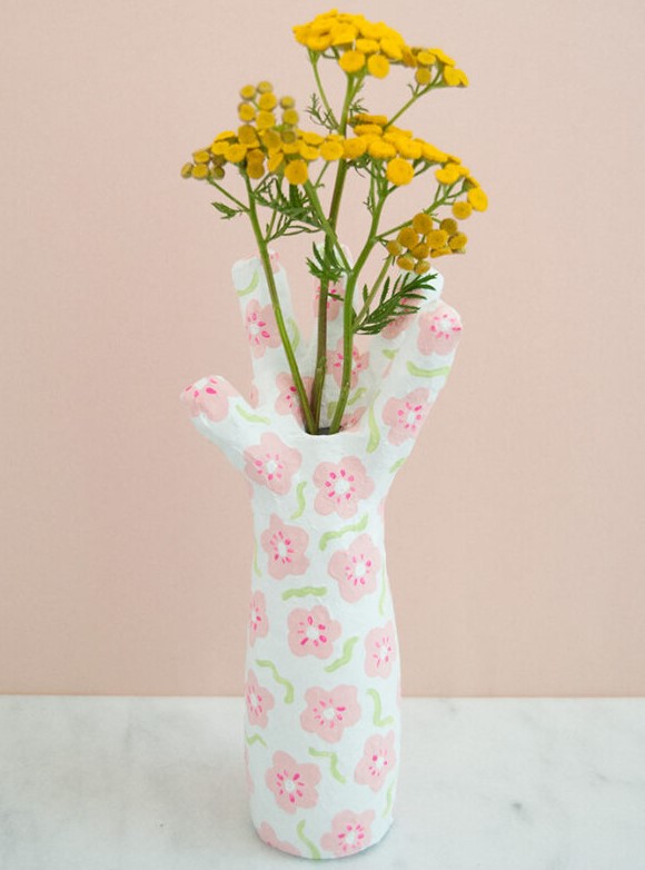 Иногда я выбираю товары, зная, что буду использовать упаковку для поделок, но в других случаях у меня на руках оказывается счастливый случай - простите за каламбур! - и этот проект - один из таких случаев. Я просматривала сайт Etsy и наткнулась на винтажную вазу в форме руки, которая выглядела очень аккуратно. Позже в тот же день, когда я собиралась переработать бутылку из-под шампуня, я поняла, что ее форма станет идеальной основой для DIY вазы в форме руки, и родился этот проект. У меня давно не было возможности заняться бумажным Папье-Маше, и это было действительно терапевтическое занятие для этой вазы и дало мне прекрасную возможность посмотреть телевизор, пока я работала. Эта техника немного сложнее, так как пальцы создают некоторые сложные места для работы, поэтому, если вы опасаетесь, что она может быть немного сложной для ваших детей, вы всегда можете полностью пропустить этап бумажного Папье-Маше рисовать прямо на скульптурной алюминиевой фольге - у вас будет просто более деревенский вид! Какой бы способ вы ни выбрали, ваша готовая ваза будет готова для демонстрации любых полевых цветов, которые вы соберете на следующей прогулке в парке.