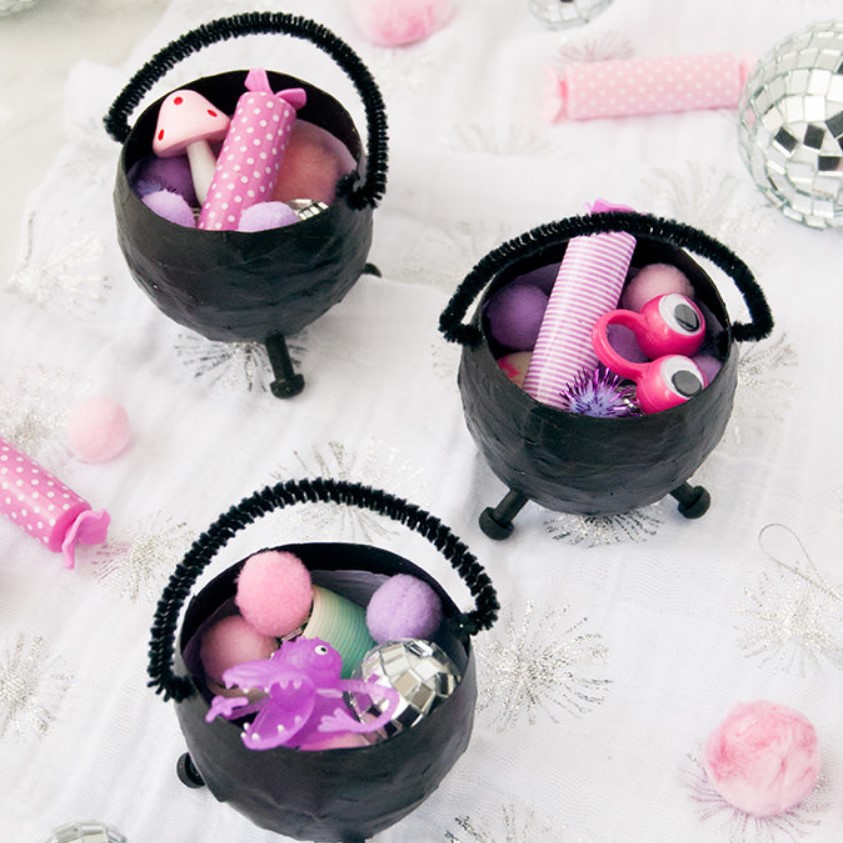 Дважды два, труд и беда, огонь горит и котел бурлит! Эти мини-котелки из бумажного маше станут идеальным штрихом для вашей вечеринки на Хэллоуин в этом году - каждая ведьма и волшебник, присутствующие на ней, обязательно захотят иметь такой же! Наполните их сладостями, жуткими тварями и волшебными забавами, чтобы все посетители вечеринки унесли их домой.